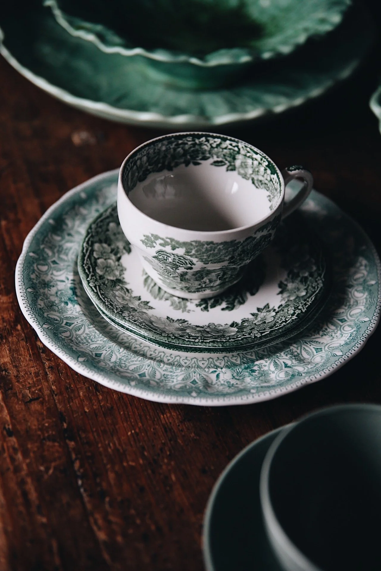 Då har vi kommit till det gröna, i serien om mitt vintage-porslin. Grönt har inte varit min kulör bakåt, men nu blir det mer och mer mina favoriter. Inte minst såhär års när vi längtar efter våren. Grönt är ju som bekant skönt!
