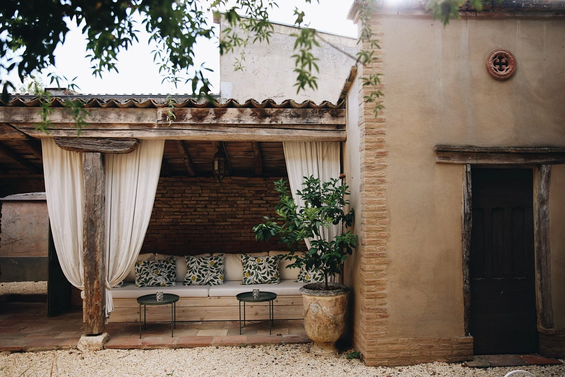 Här har tiden stått stilla. I flera hundra år. Det är knäpptyst, sånär som på kvittret från hundratals småfåglar i grönskan ovanför porten och porlet från brunnen som reser sig som ett litet altare, framför det flera hundra år gamla köksfönstret.