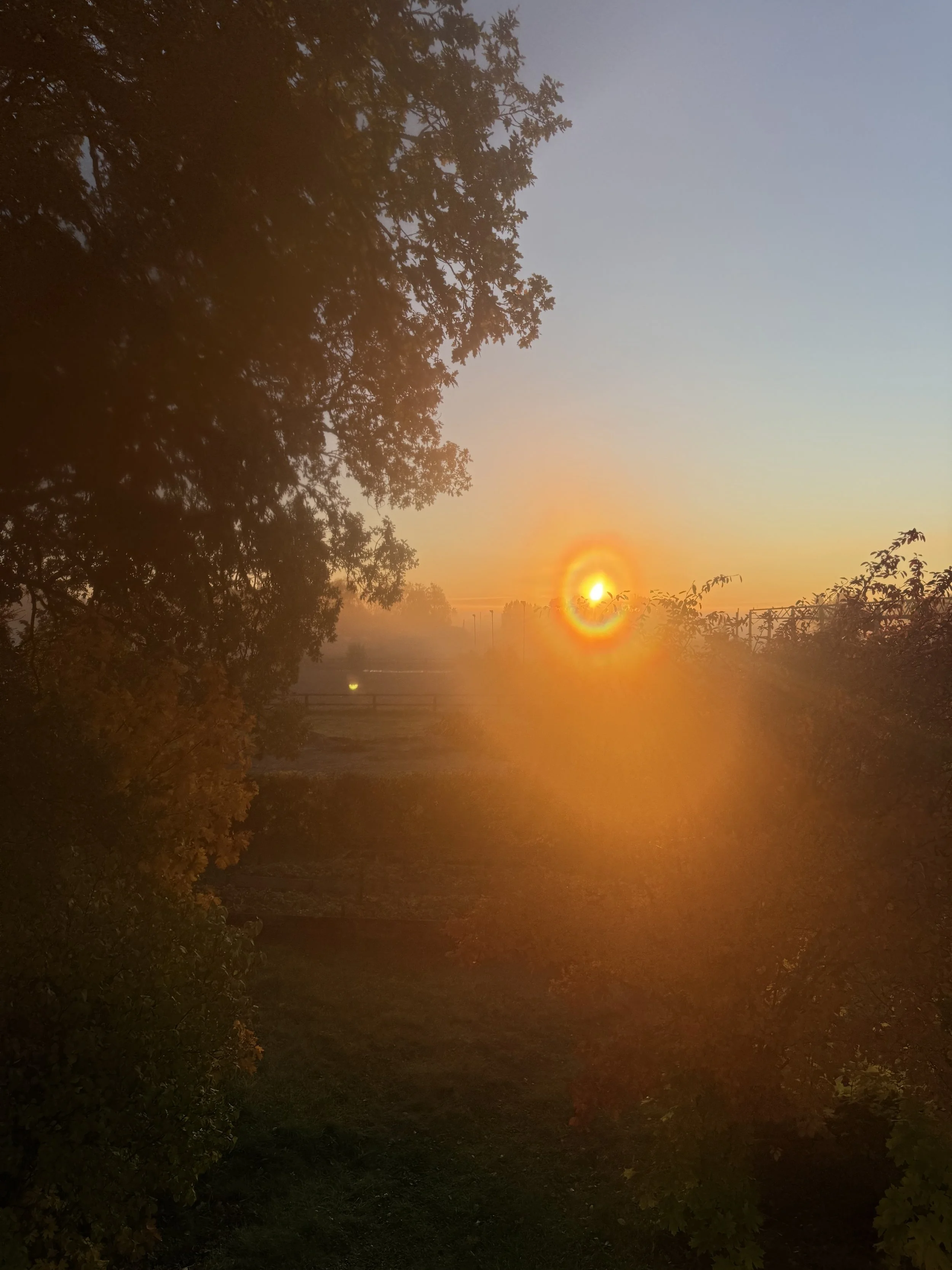 Det är en otroligt vacker morgon, varmt för årstiden. Det skulle visa sig att en hel månad framåt skulle vi väckas av den ena fantastiska soluppgången efter den andra. Helt otroligt! För mig blev det en påminnelse om Guds trofasthet. Att Han skulle fortsätta ta hand om oss.