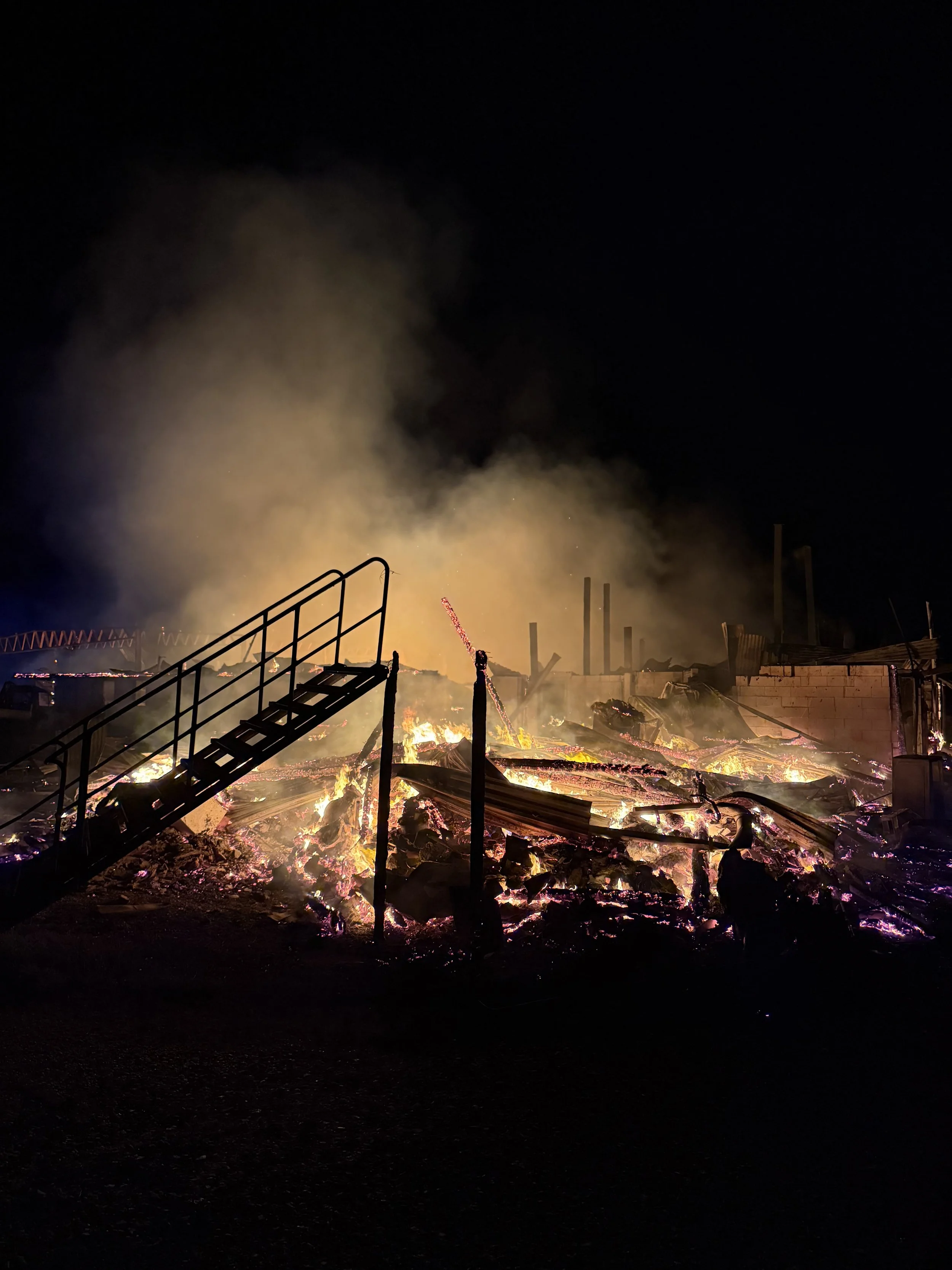 4 brandstationer kämpar mot elden hela kvällen, natten och långt in på förmiddagen dagen efter. När vi lämnar gårdsplanen för att äntligen få gå hem och lägga oss, brinner det fortfarande kraftigt och vi hör brandmännen hela natten. Ellen och Nellys boenden är helt borta, kvar finns bara som en brinnande aska. Den vita murade delen av stallet står delvis kvar, om än sotig, men fönster, tak och övriga väggar har brunnit upp.