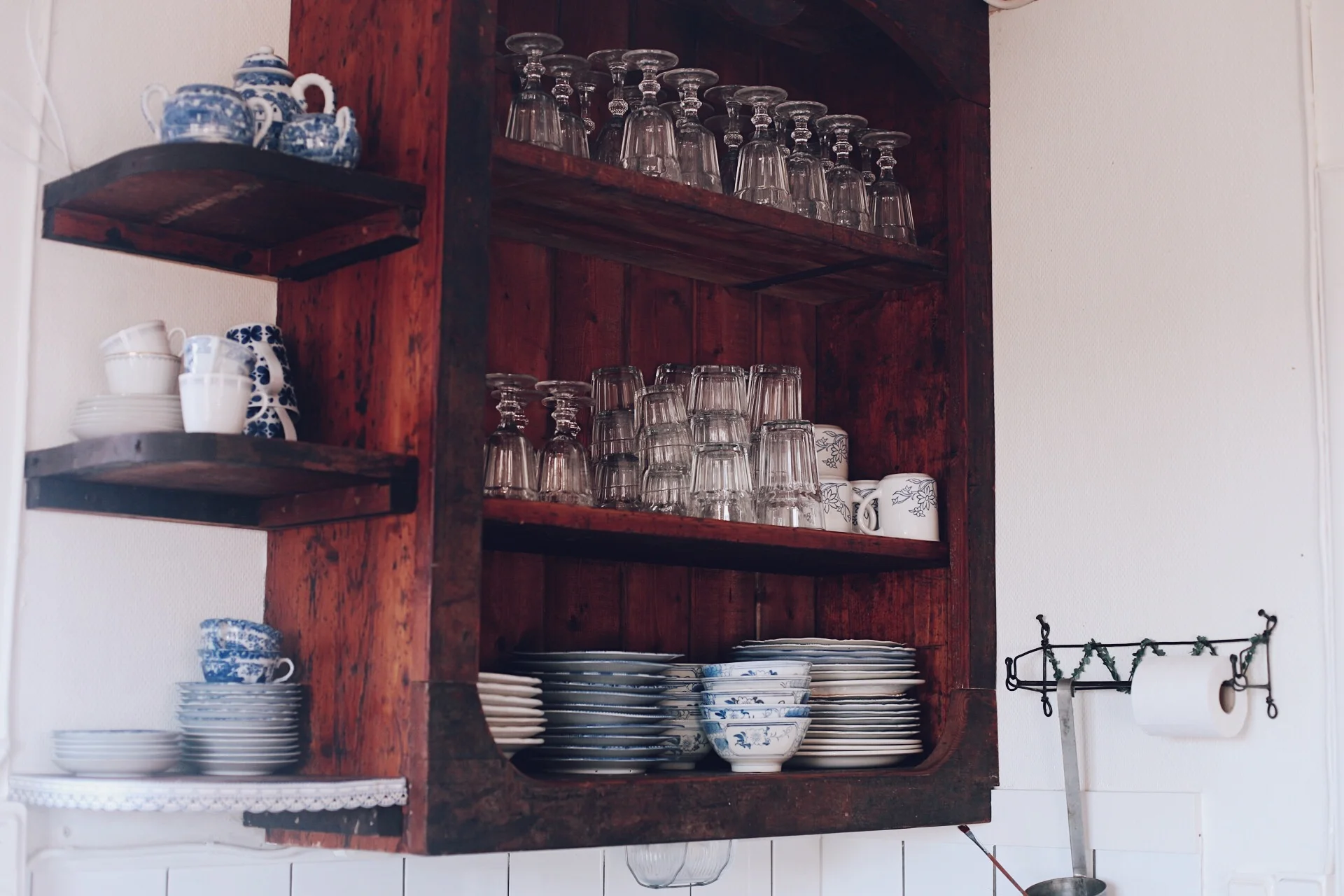 Inredningen är en charmig mix av udda stolar och bord gjorda av gamla symaskinsunderreden.